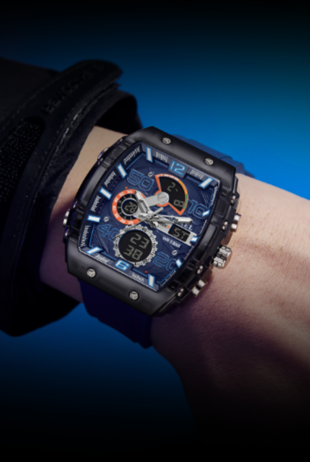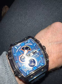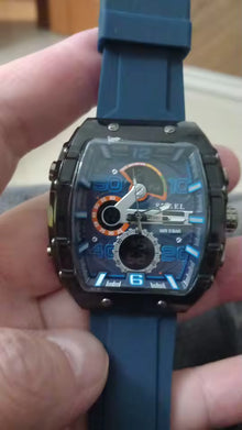 Este reloj POEDAGAR combina un diseño moderno con una estética sofisticada. Su aspecto recuerda a los modelos de lujo deportivos, ofreciendo una apariencia premium a un precio accesible. Presenta una carátula azul con detalles metálicos y una correa de cuero que aporta elegancia y estilo.